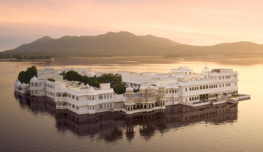 Floating like a dream in the middle of Lake Pichola, the Taj Lake Palace is an 18th-century marble marvel. Accessible only by boat, this hotel offers unmatched views of the Aravalli hills and the City Palace.